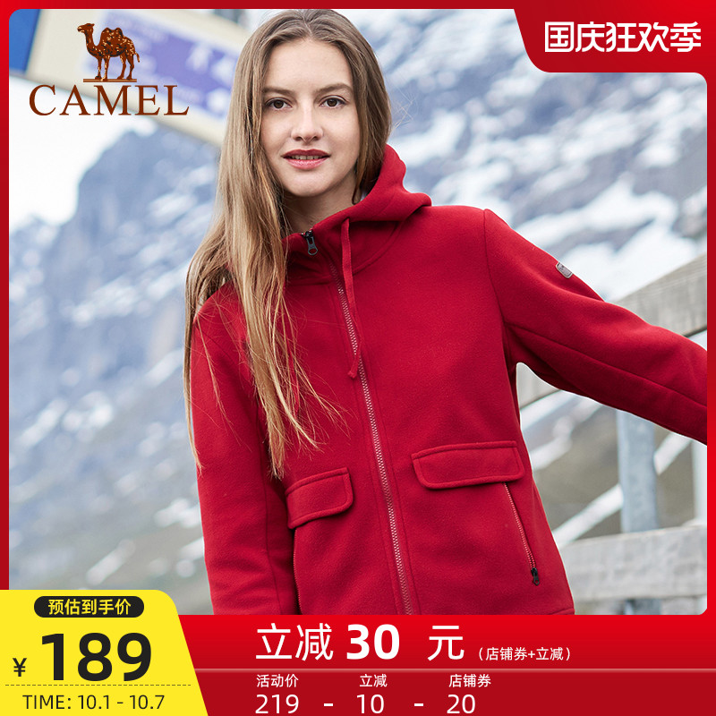 骆驼户外卫衣女 秋季新款女士运动摇粒绒时尚连帽抓绒衣外套开衫