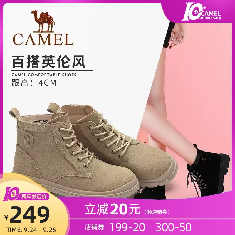 骆驼女鞋秋冬季马丁靴厚底复古英伦风百搭高帮工装靴真磨砂皮靴子