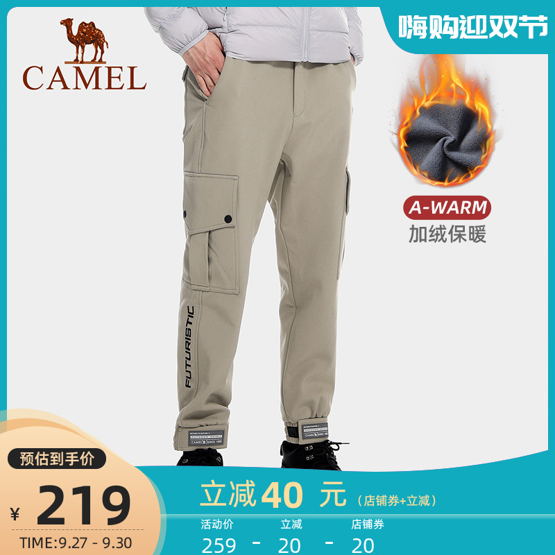 骆驼户外软壳裤男秋冬新款弹力保暖工装风束脚休闲冲锋长裤男