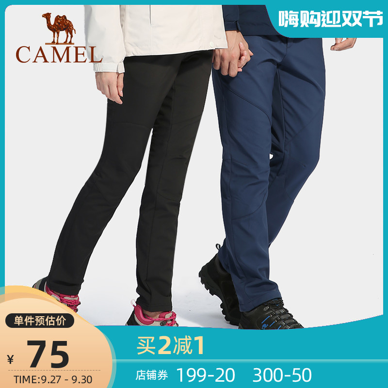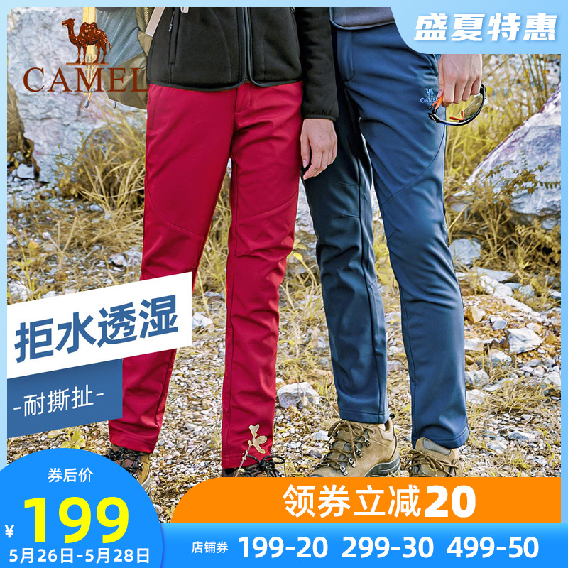 骆驼户外情侣冲锋软壳裤 防泼水抗静电透气男女抓绒保暖软壳长裤