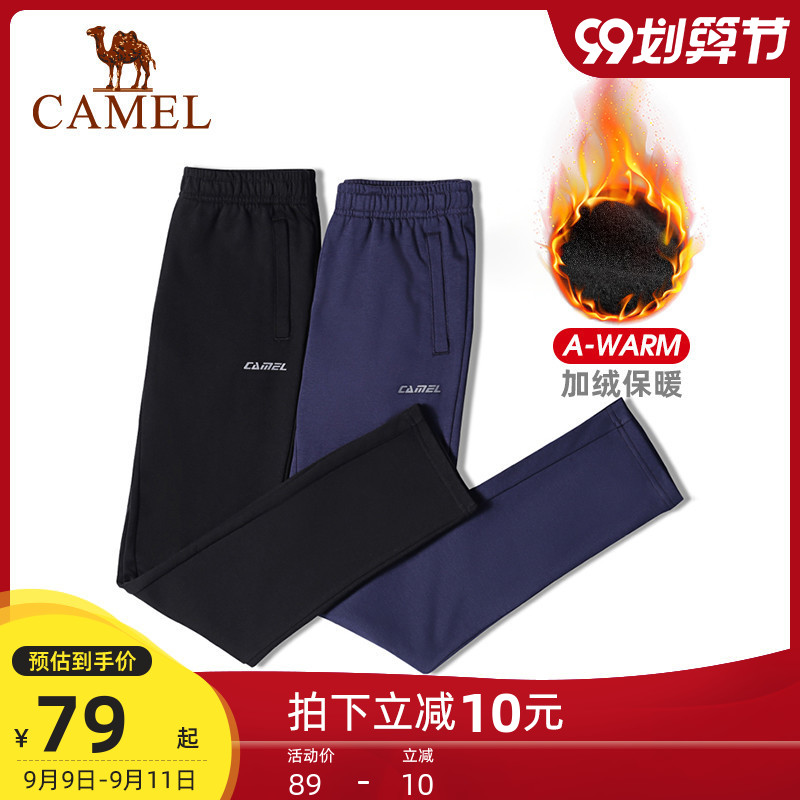 骆驼运动裤男士秋季加绒保暖直筒长裤休闲卫裤宽松束脚裤子女
