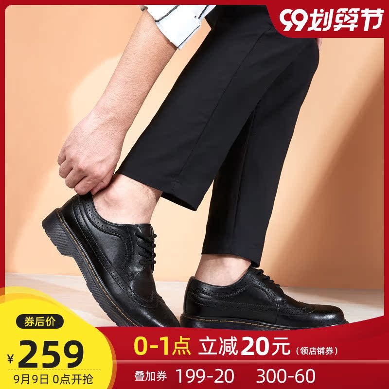 骆驼官方旗舰店骆驼男鞋秋季新款雕花皮鞋男百搭商务真皮休闲鞋布洛克厚底鞋
