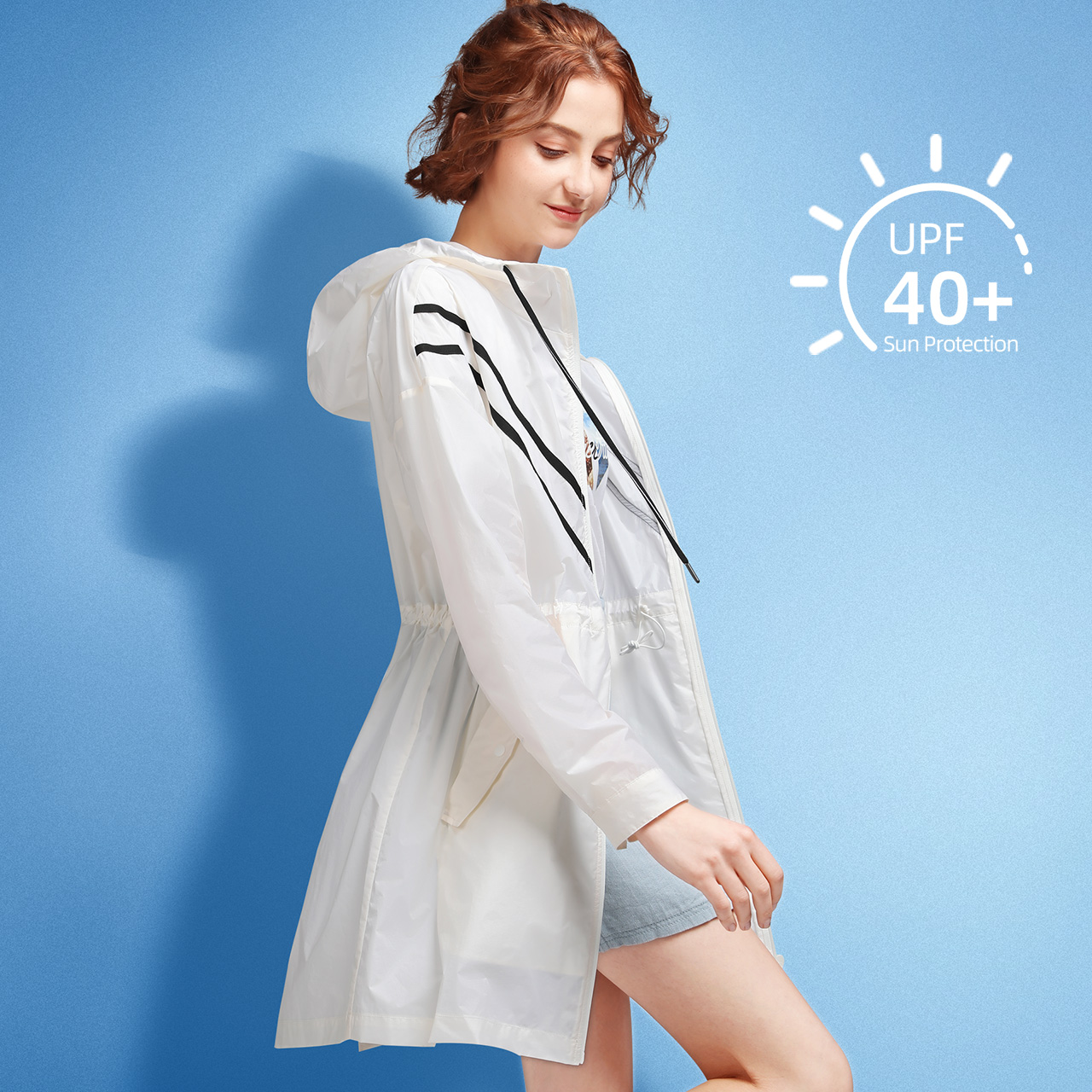 骆驼官方旗舰店骆驼户外皮肤风衣女秋季连帽防紫外线轻薄透气中长款防晒衣服UPF50+防紫外