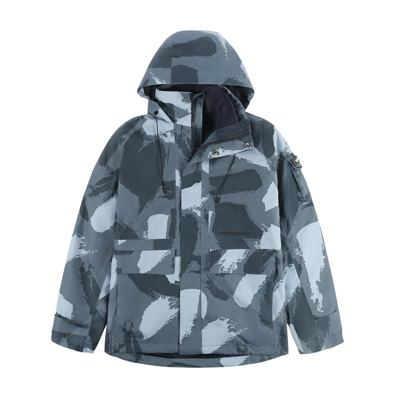 骆驼官方旗舰店骆驼迷彩冲锋衣男女三合一可拆卸摇粒绒内胆防风防水潮牌印花外套时尚迷彩印花外套 摇粒绒可拆卸内胆 两件套