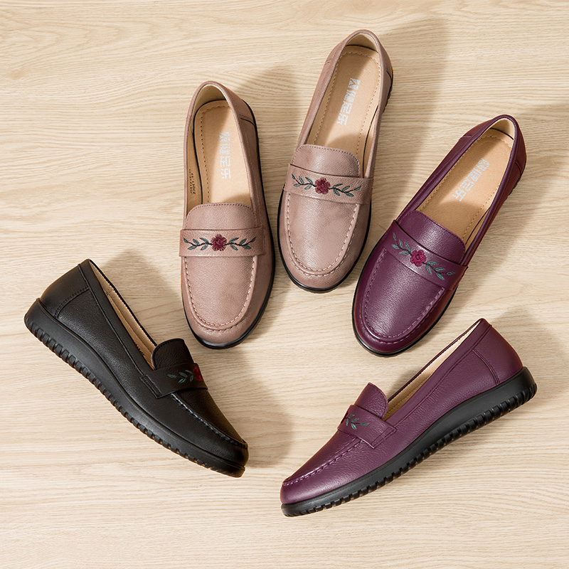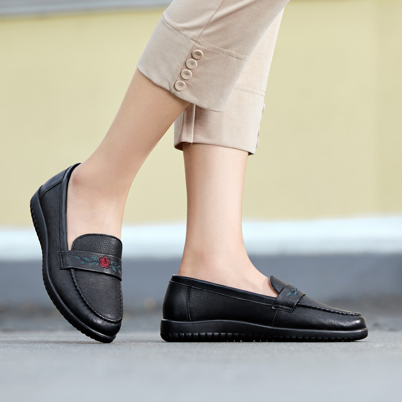 • 骆驼官方旗舰店骆驼健足乐新款刺绣妈妈皮鞋轻便套脚乐福鞋软底低跟女单鞋01/4