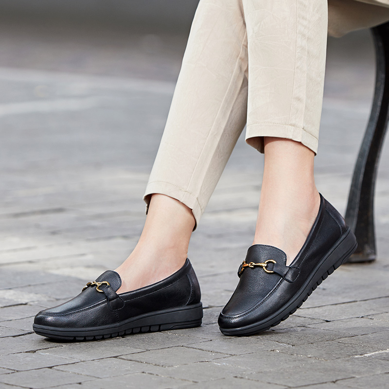• 骆驼官方旗舰店骆驼女鞋健足乐新款休闲皮鞋软底舒适妈妈鞋乐福鞋低跟单鞋女23/4