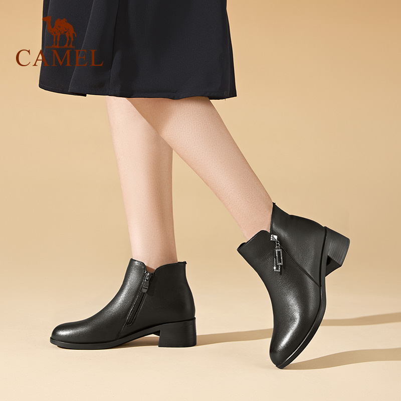 • 骆驼官方旗舰店骆驼健足乐女鞋新款真皮靴子女士切尔西靴冬季加绒短靴保暖妈妈鞋12/4
