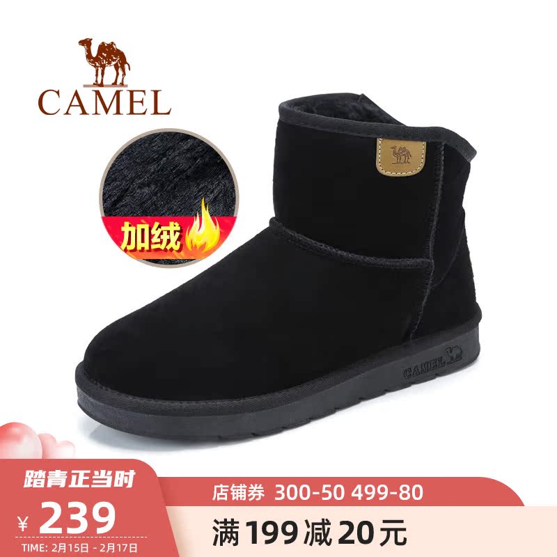 • 骆驼官方旗舰店骆驼男鞋秋春季男士时尚百搭雪地靴高帮靴子男靴仿羊毛保暖休闲靴34/4